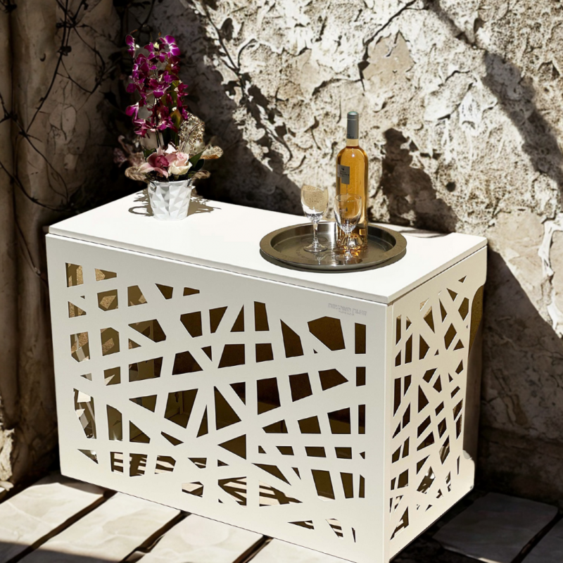 Ce cache climatiseur extérieur est fabriqué en 100% aluminium. Il est résistant aux intempéries, à la corrosion et aux UV. Il ne rouille pas et conserve son aspect au fil du temps, même en conditions extérieures difficiles.