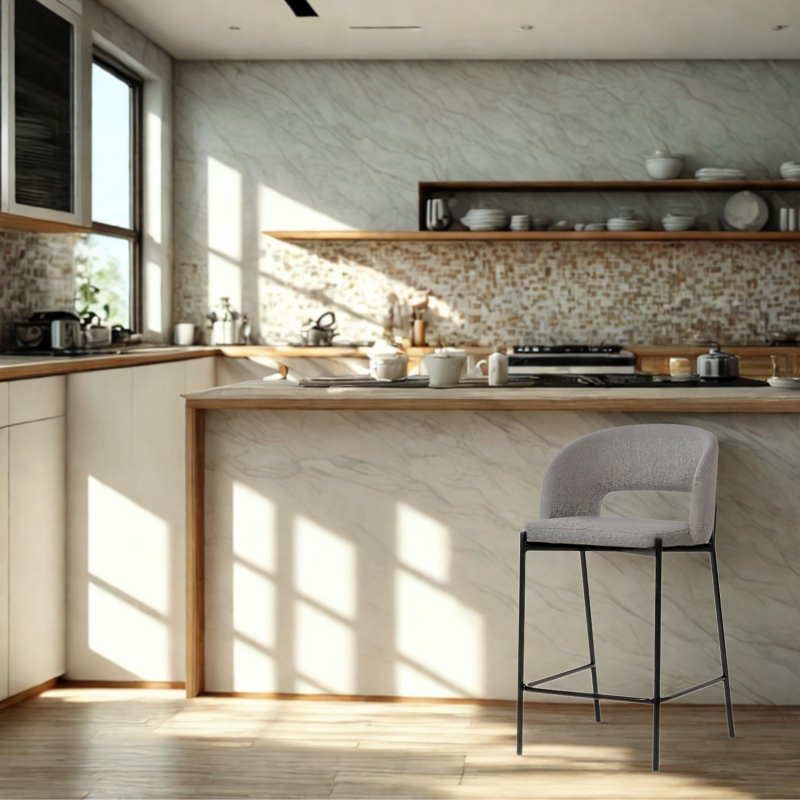 Tabouret de bar – tissus gris – modèle KRISTEN