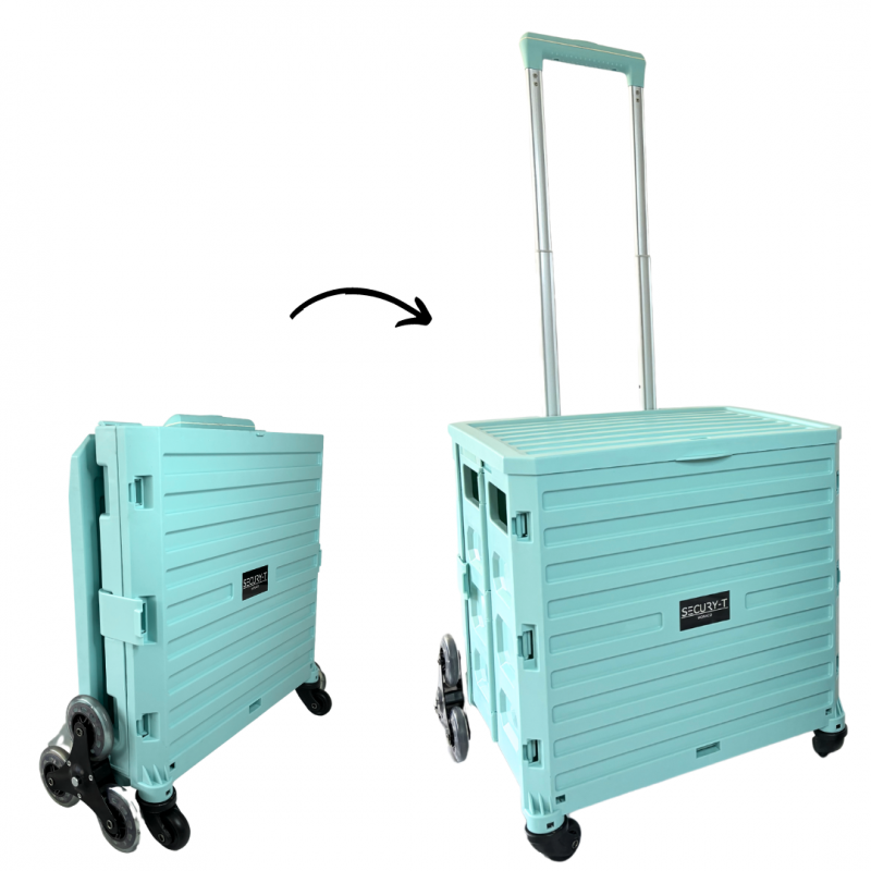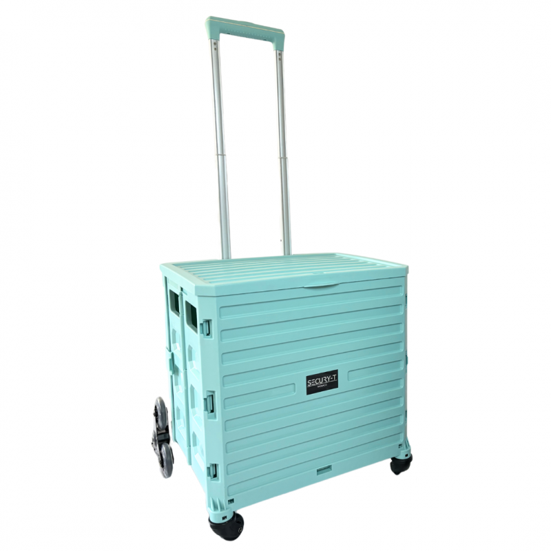 Chariot de course 8 roues - Pliable - Plastique - Avec Couvercle - Bleu Turquoise - 70Kg