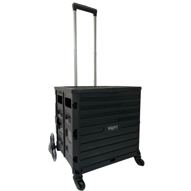 Chariot de course 8 roues - Pliable - Plastique - Avec Couvercle - Noir - 70Kg