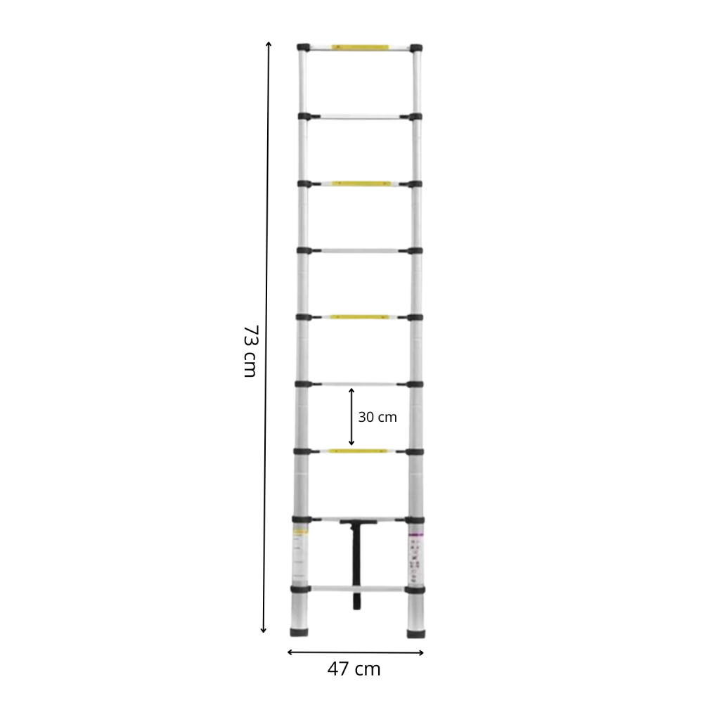 Cette echelle telescopique en aluminium est l’alliée idéale pour vos travaux en intérieur comme en extérieur. Avec ses 9 marches et une hauteur déployée de 2,6 mètres, elle vous offre une grande polyvalence.