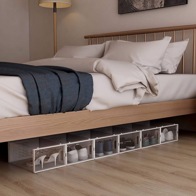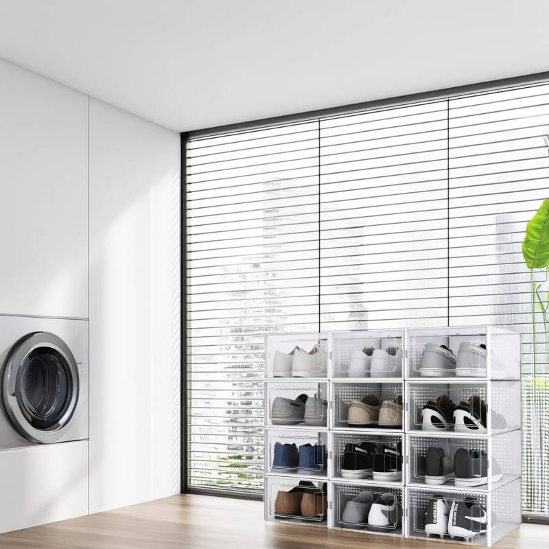 Organiser vos chaussures n’a jamais été aussi simple et ludique avec ce range chaussure de large format transparent et blanc, pack de 12 boites pour rangers vos baskets, talons, ballerines, sandales et bien plus encore !