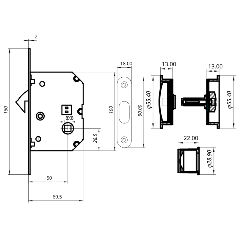 Le mécanisme à crochet est spécialement conçu pour les portes coulissantes, permettant une fermeture efficace sans gêner le coulissement. La poignée ergonomique assure une bonne prise en main, tandis que le tire-doigts facilite l’ouverture/fermeture de la porte lorsqu’elle est complètement encastrée dans la cloison.
