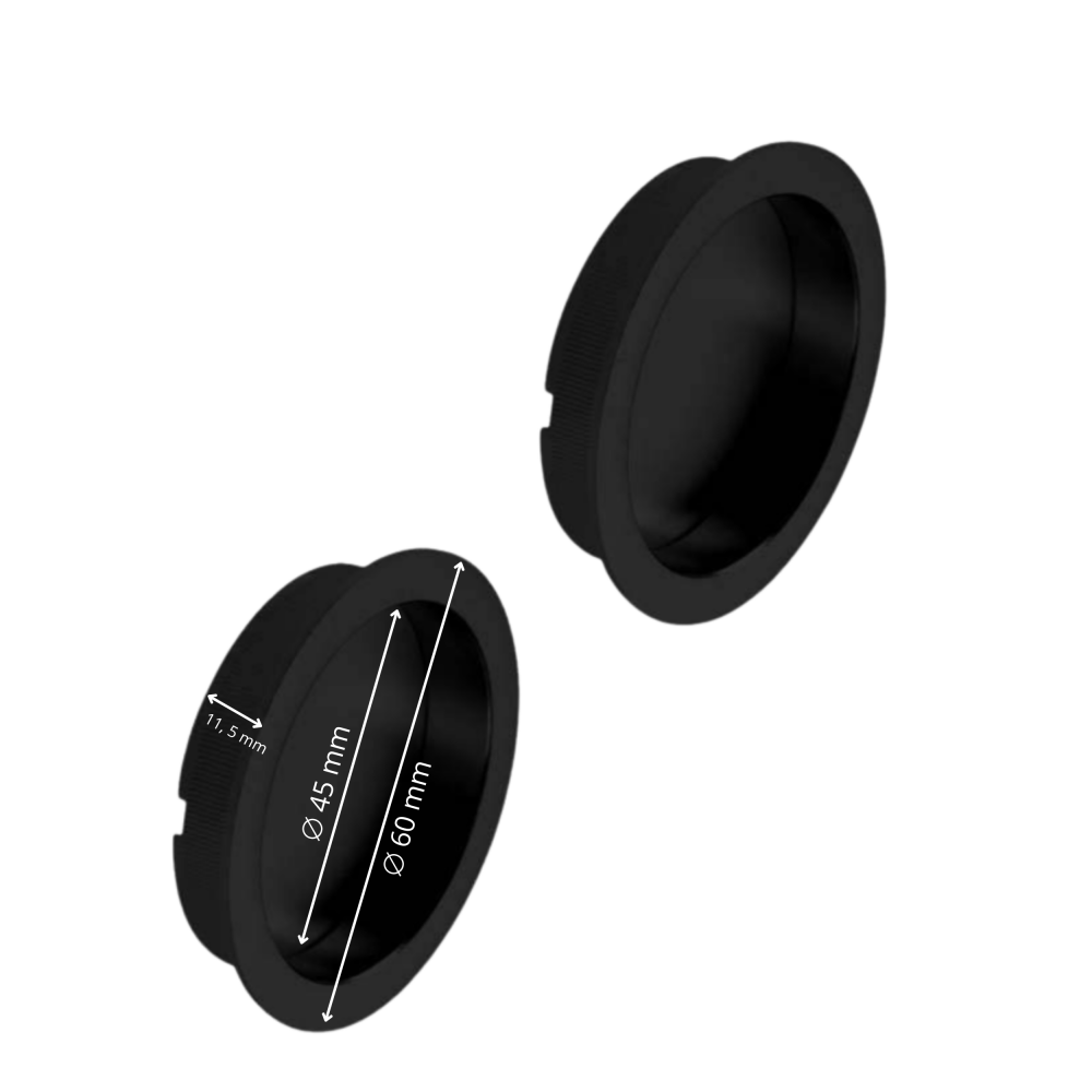 Ajoutez une touche moderne et épurée à vos portes coulissantes ou à galandage avec cette paire de poignées à encastrer rondes de coloris noir, au design minimaliste et à la finition noir mat élégante. Cette poignée porte galandage au format rond est idéale pour les intérieurs contemporains, elles allient discrétion, esthétisme et confort d’utilisation.