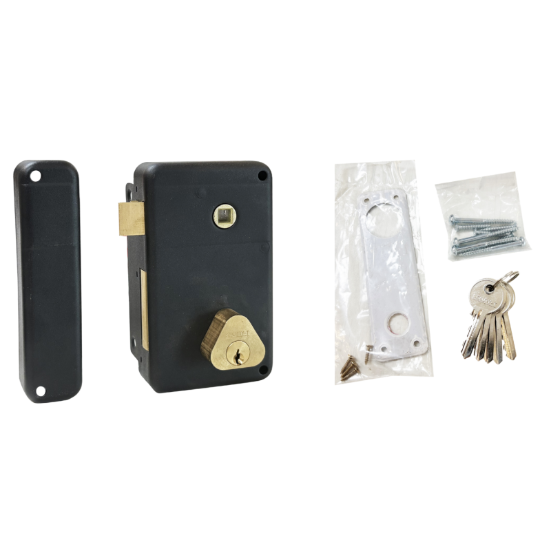 Fabriquée en acier à cylindre renforcé à 2 tours de clés, cette serrure en applique est idéale pour une installation en extérieur, qu’il s’agisse d’un portail résidentiel ou professionnel. Son mécanisme fiable et sa conception verticale facilitent l’intégration sur les structures à ouverture latérale.