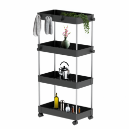 Desserte à roulettes, Chariot de Rangement, Étagère Roulante, 4 Niveaux