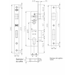Serrure portail battant - Axe à 20mm - Entraxe 85mm - Chromée + gâche