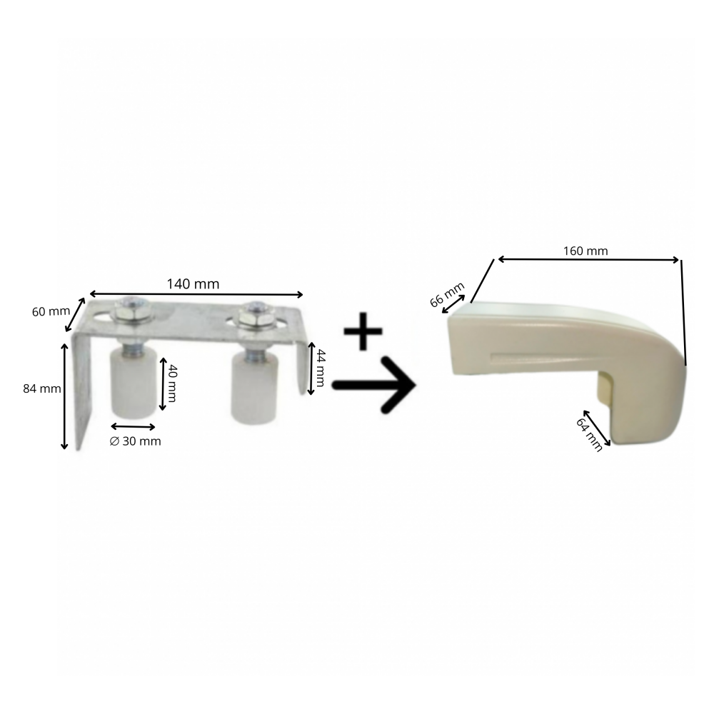 Guide portail coulissant - Acier zingué blanc - Réglable + Cache