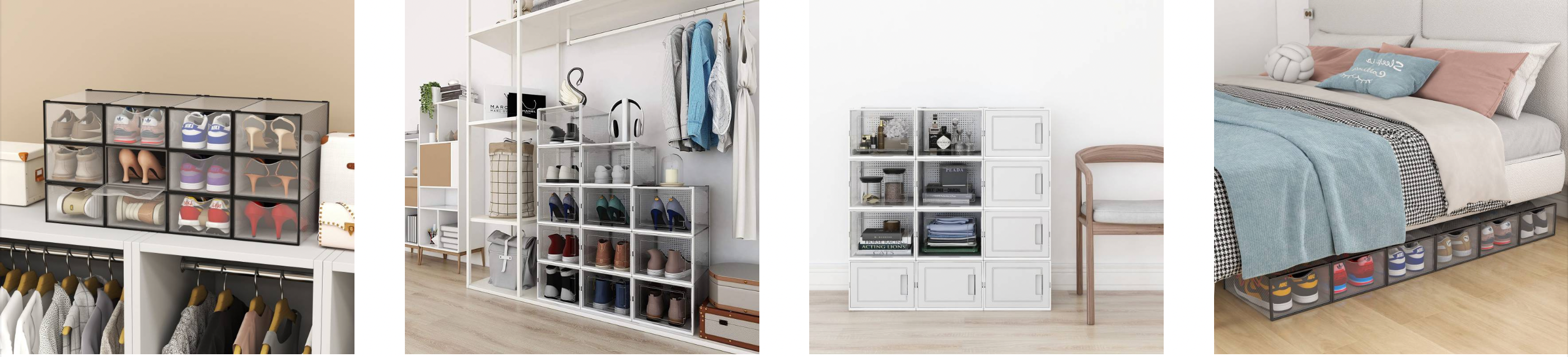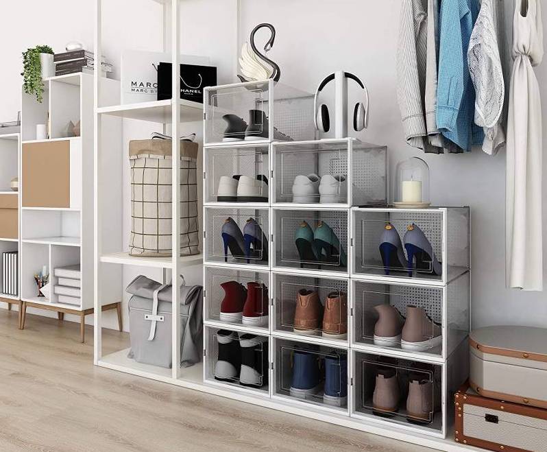 Empilez-les : Placez vos boîtes à chaussures empilables sur vos étagères, dans votre placard, ou à même le sol. Leur design transparent vous permet de voir instantanément le contenu de chaque boîte.