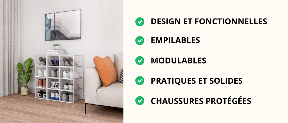 L'utilisation de ces boîtes modulables est simple et intuitive. Voici quelques conseils pour organiser vos chaussures de manière optimale :