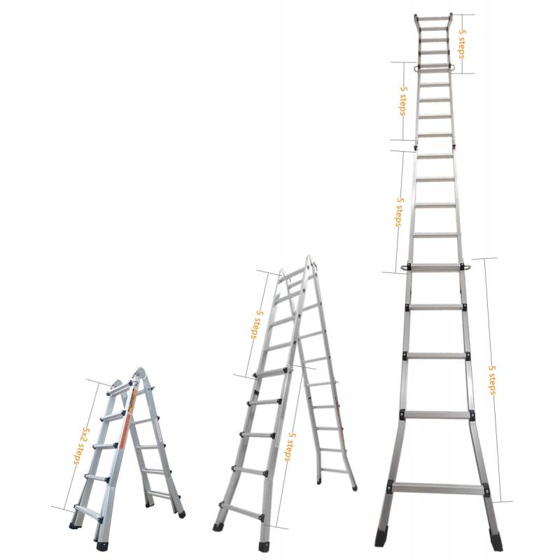 Échelle articulée et télescopique pliante en aluminium 4x5 marches 4,96m