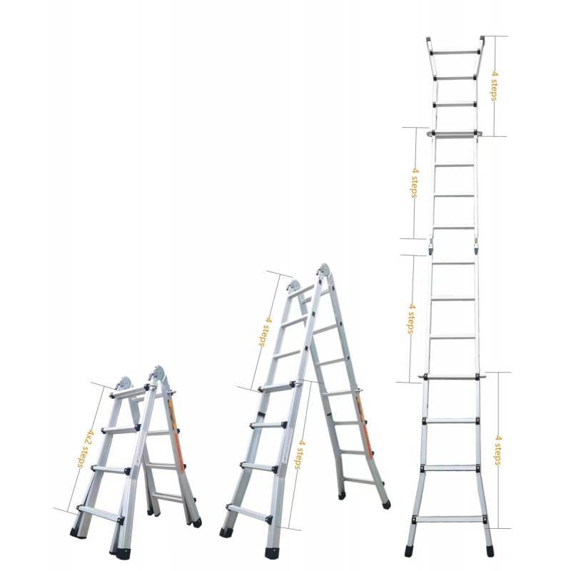 Échelle articulée pliante et télescopique en aluminium 4x4 marches 3,88m + 2 tablettes