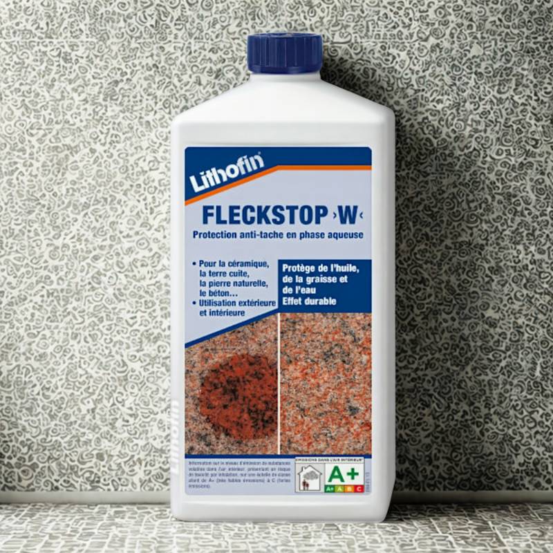 Protecteur invisible contre les tâches - Lithofin Fleckstop W - Traitement Hydrofuge Anti-taches Pierre Naturelle