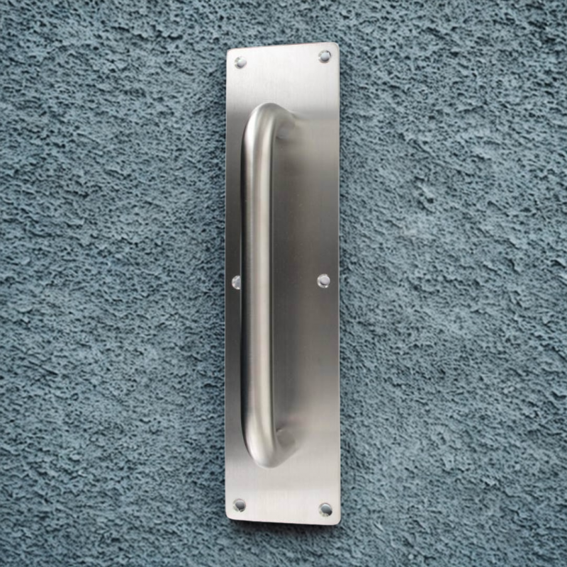 Pensez pratique pour vos poignées de portes avec cette poignée de tirage en inox. Conçue pour offrir une prise en main confortable et une résistance optimale, elle est montée sur une plaque de propreté en acier inoxydable, idéale pour un usage intensif. Fabriquée entièrement en inox SS304 pour une excellente durabilité et une résistance à la corrosion.