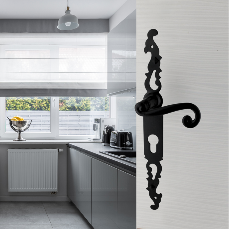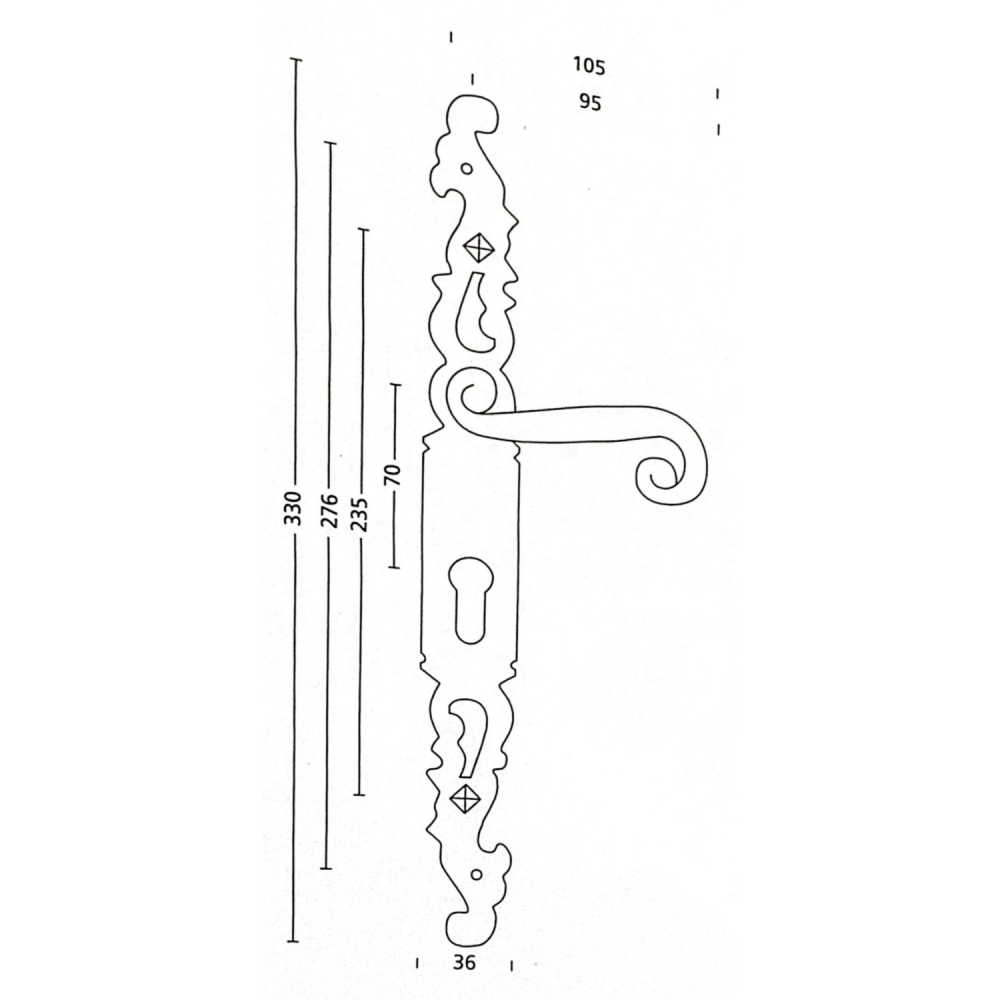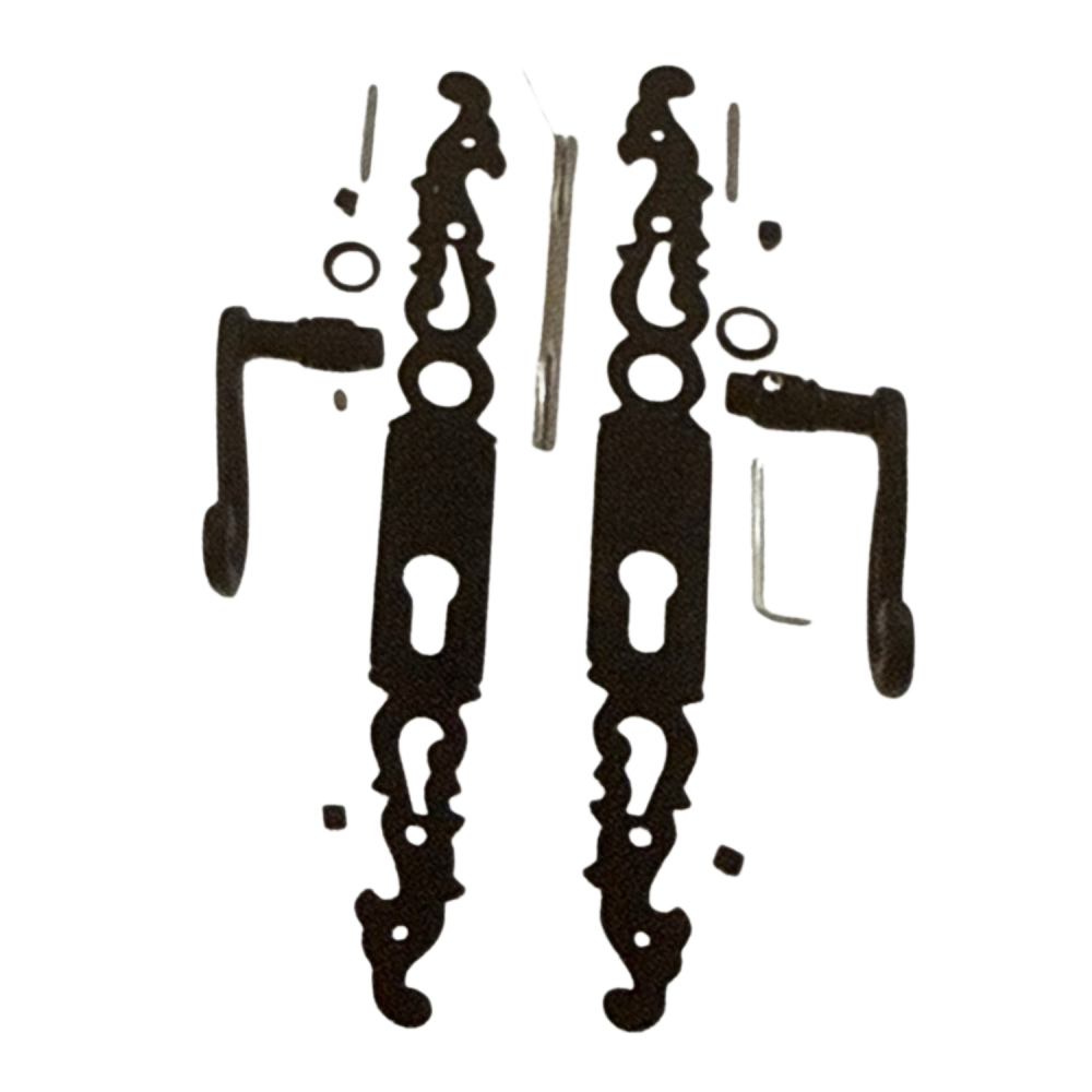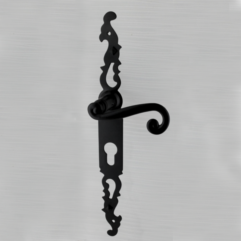 Poignées de porte fer forgé COQ 330x36mm noir à saillie rehaussée