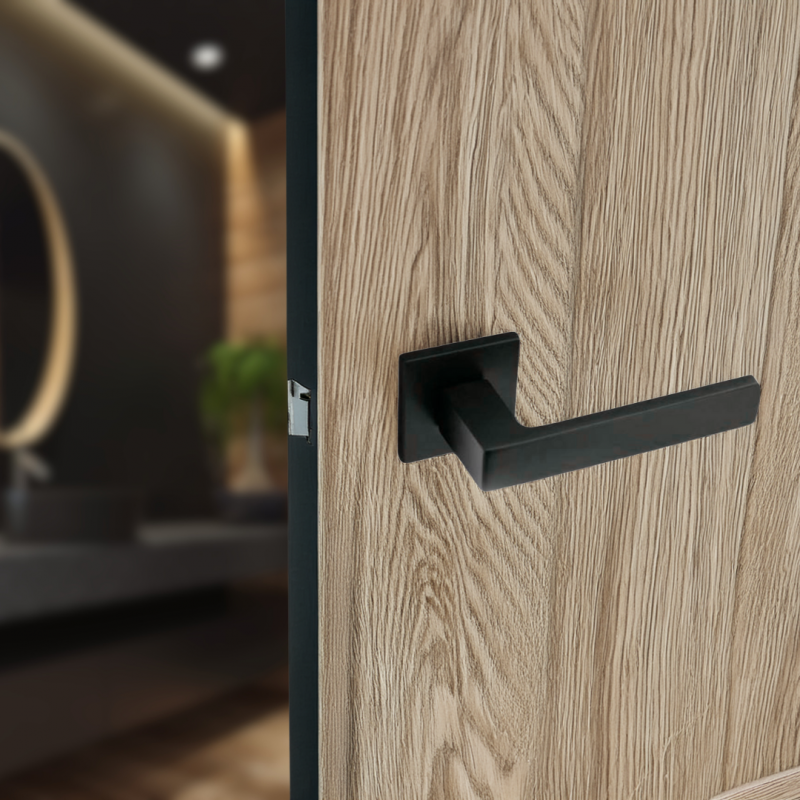 Poignées de porte sur rosace noir mat carré - Modèle Nathaly