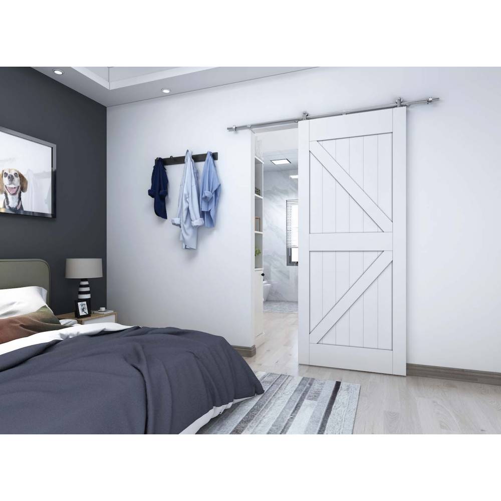 Apportez du style à votre intérieur avec ce rail coulissant décoratif apparent pour porte en bois. Idéal pour les portes de style loft, fermière ou atelier, le design visible et élégant en fait une solution à la fois pratique et esthétique.