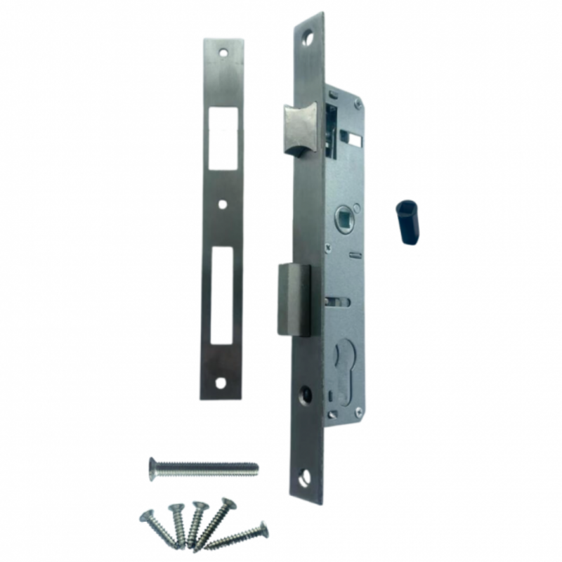 Serrure portail battant - Axe 20 mm - Entraxe 70mm - Chromée + gâche
