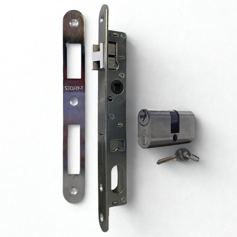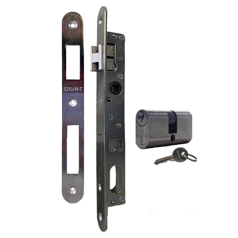 Serrure portail battant - Axe 15mm - Avec gâche et cylindre oblong